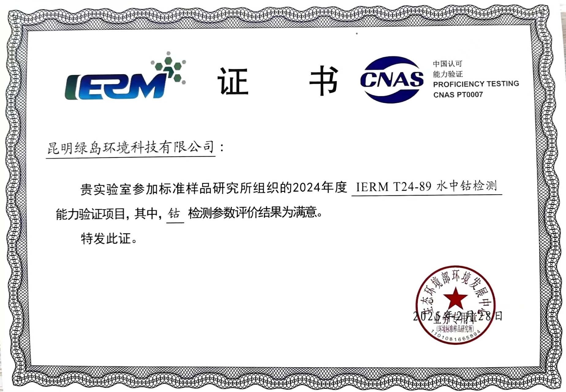 強化能力建設 夯實發(fā)展根基(五) ——昆明綠島環(huán)境科技有限公司喜獲2項能力驗證證書